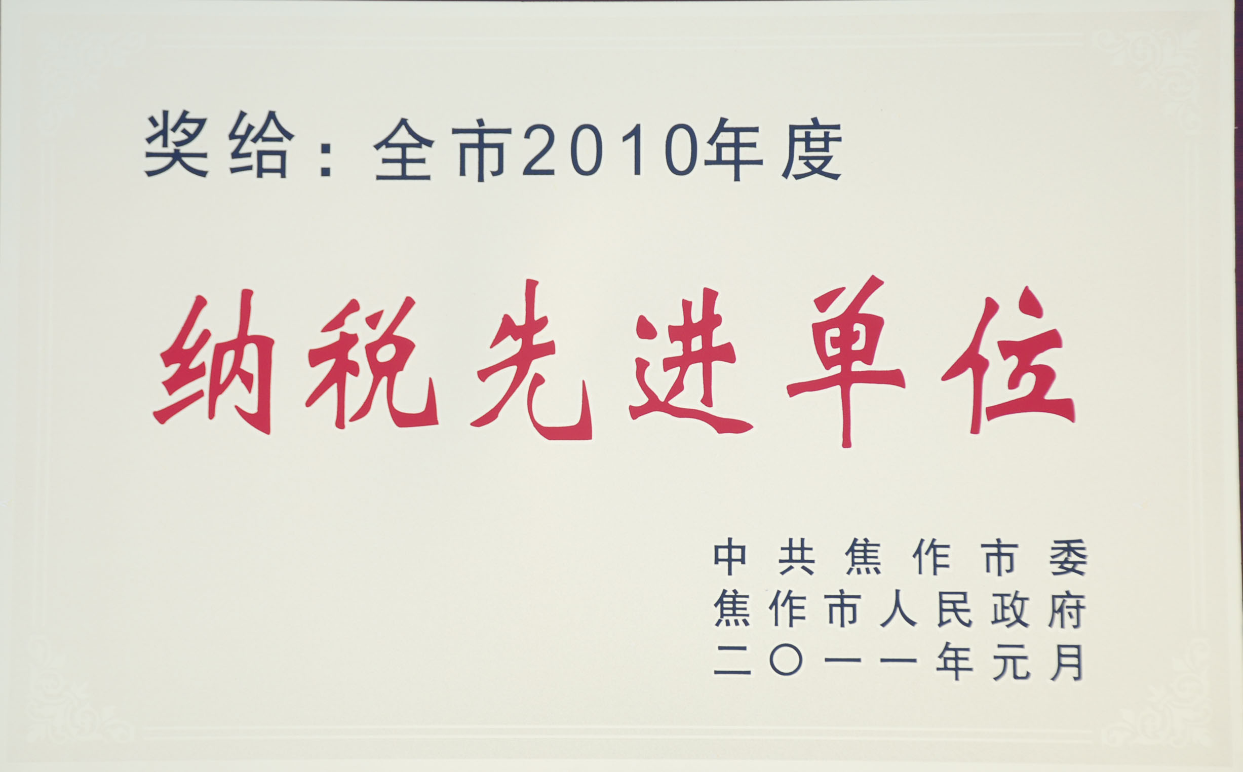 公司獲焦作市納稅先進(jìn)單位稱號(hào)