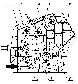 PF系列反擊式破碎機(jī)簡(jiǎn)介: PF系列反擊式破碎機(jī)是我公司在吸收國(guó)內(nèi)外先進(jìn)技術(shù)基礎(chǔ)上精心設(shè)計(jì)出的新產(chǎn)品。該系列設(shè)備可處理粒度不大于500毫米、抗壓強(qiáng)度不超過320 兆帕的物料(花崗巖、石灰石、混凝土等),反擊式破碎機(jī)以其優(yōu)異的性能和良好的表現(xiàn),廣泛應(yīng)用于生產(chǎn)高等級(jí)公路、水電、人工砂石料、破碎、建筑等行業(yè)用石料。 PF系列反擊式破碎機(jī)理想的入料粒度為100-500mm,不得超過規(guī)定值。出料粒度用戶根據(jù)需要調(diào)整錘頭與反擊板、均整部件之間的間隙而達(dá)到。 反擊破工作原理: PF系列產(chǎn)品利用沖擊能破碎物料,工作時(shí),在電動(dòng)機(jī)的帶動(dòng)下,反擊式破碎機(jī)的轉(zhuǎn)子高速旋轉(zhuǎn),物料進(jìn)入后,與轉(zhuǎn)子上的板錘撞擊破碎,然后又被反擊到襯板上再次破碎,最后從出料口排出。用戶可調(diào)整反擊架和轉(zhuǎn)子架之間的間隙可達(dá)到改變物料出料粒度和物料形狀的目的。 反擊破性能特點(diǎn): 1.多腔均勻破碎,適宜破碎硬巖; 2.低矮的大進(jìn)料口,便于生產(chǎn)線布置和增大進(jìn)料尺寸; 3.新型耐磨材料使板錘、反擊板和襯板使用壽命長(zhǎng); 4.高鉻板錘、獨(dú)特的反擊襯板,尤其適用于硬巖破碎、高效節(jié)能; 5.硬巖破碎、高效節(jié)能; 6.均整板結(jié)構(gòu)使排料更呈小粒徑和立方體形,無(wú)內(nèi)紋; 7.產(chǎn)品形狀呈立方體,排料粒度大小可調(diào); 8.簡(jiǎn)化破碎流程; 9.全液壓開啟,便于維修及更換易損件。 PF系列反擊式破碎機(jī)結(jié)構(gòu)圖: 1.后箱體 2.反擊襯板 3.反擊架 4.襯板 5.進(jìn)料口 6.底座 7.板錘 8.轉(zhuǎn)子架 PF系列反擊式破碎機(jī)外形尺寸圖:
